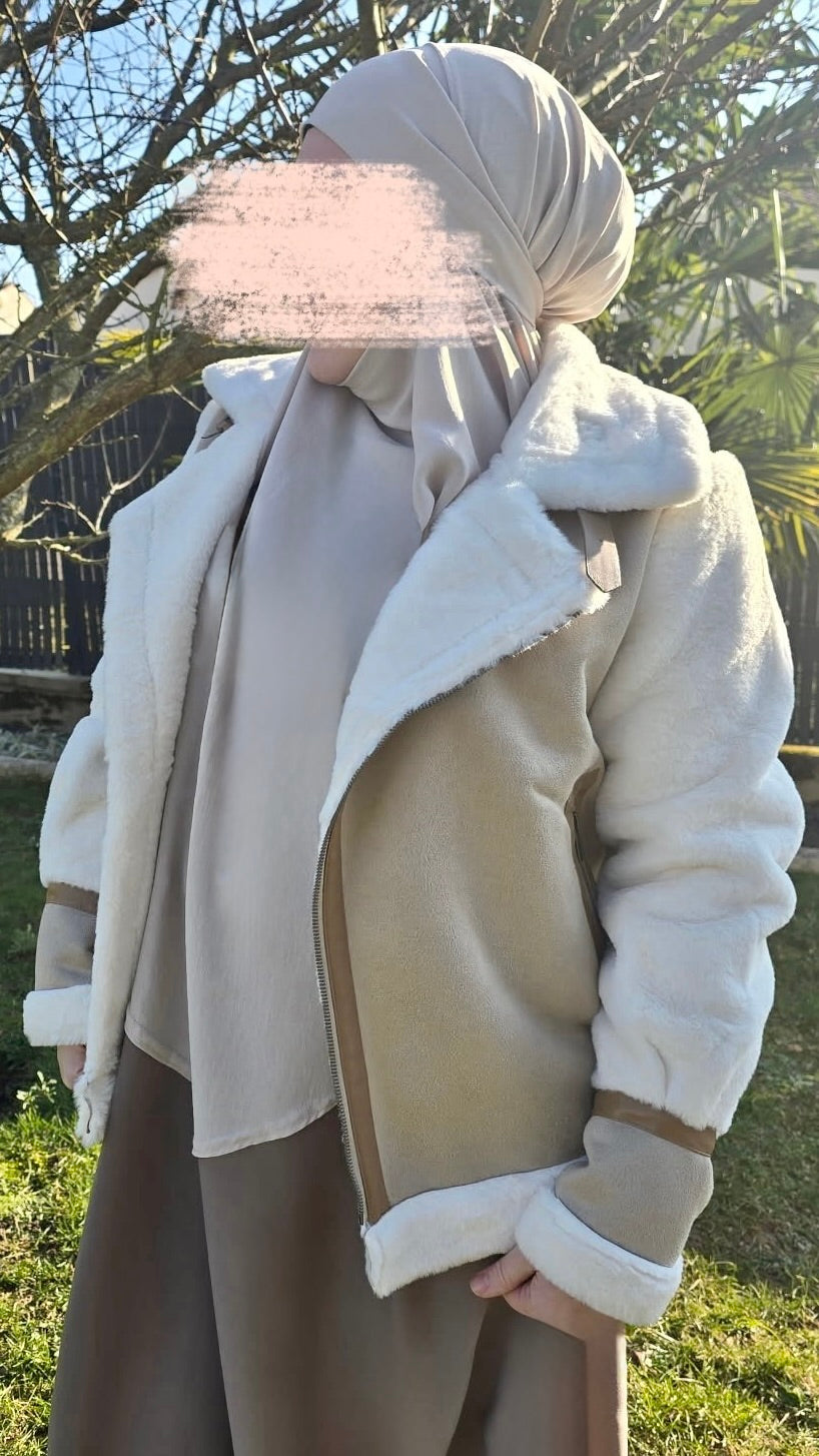 Veste en Fourrure et Suédine Beige : Élégance et Douceur Incomparable